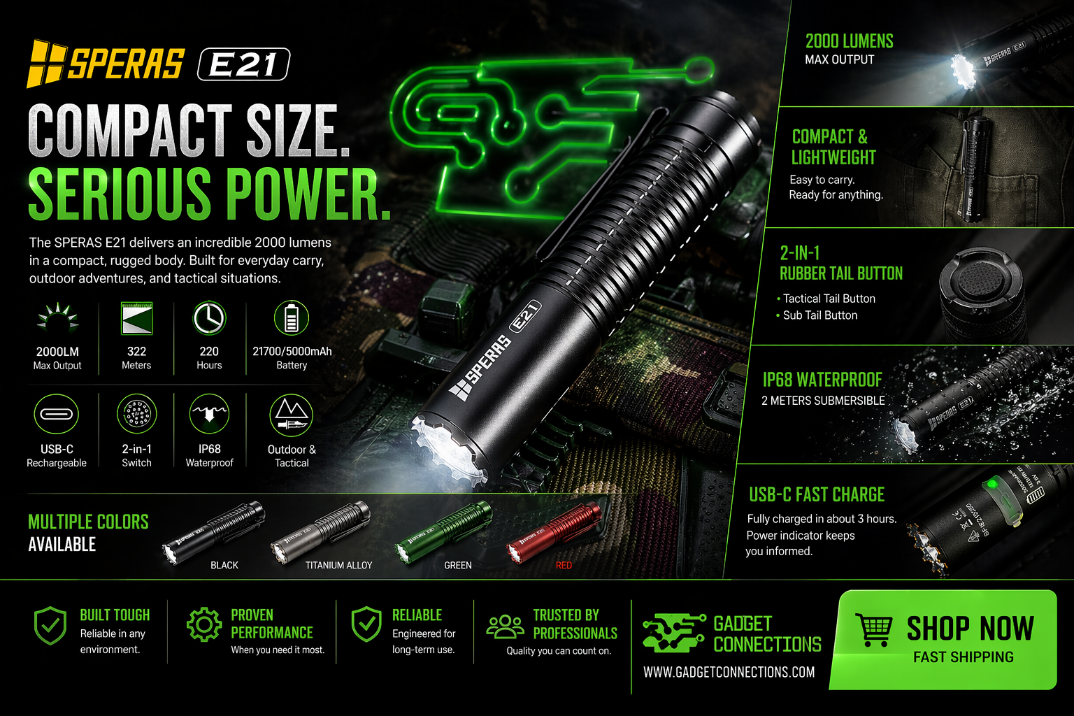 Gadget Connections is a US-based dealer focused on everyday carry lights, batteries, and accessories that ship from my PA warehouse — no overseas wait, no gray market. Our lineup covers EDC flashlights from trusted brands like Convoy, Wuben, OLIGHT, Speras, Fenix, and Nitecore, paired with the protected 18650 batteries, 21700 battery cells, and chargers stocked in my batteries and chargers collection. Whether you need a pocket-sized keychain light, a tactical thrower, or a UV flashlight for inspection work, glue curing, leak detection, or spotting counterfeit currency, every model is field-tested before it hits the cart. Browse the full catalog for current stock, real lumen ratings, and same- or next-business-day shipping on in-stock orders — no marketing fluff, just gear that earns its place on your belt. Yeah this while true, is for Google.