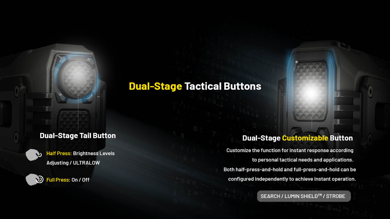 ποΈ Dual tactical buttons β fast access to brightness and custom modes