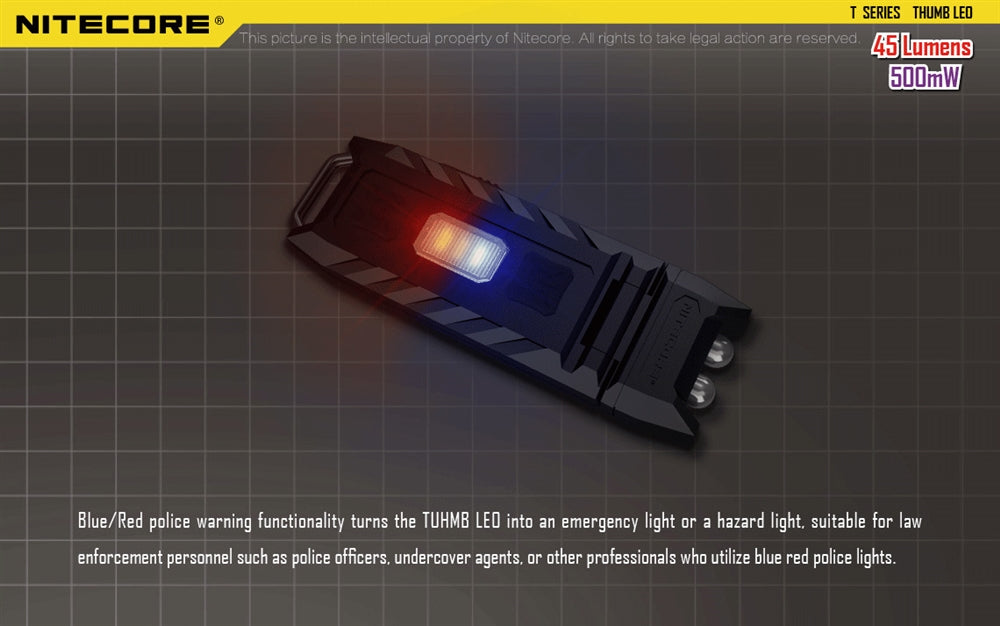Built with law enforcement and security professionals in mind, the Nitecore THUMB LEO is a compact, lightweight clip-on flashlight that delivers versatile lighting in a pocket-friendly form. It combines a 45-lumen white light, a 500mW UV light, and a red & blue alternating signal mode for identification and emergency use.