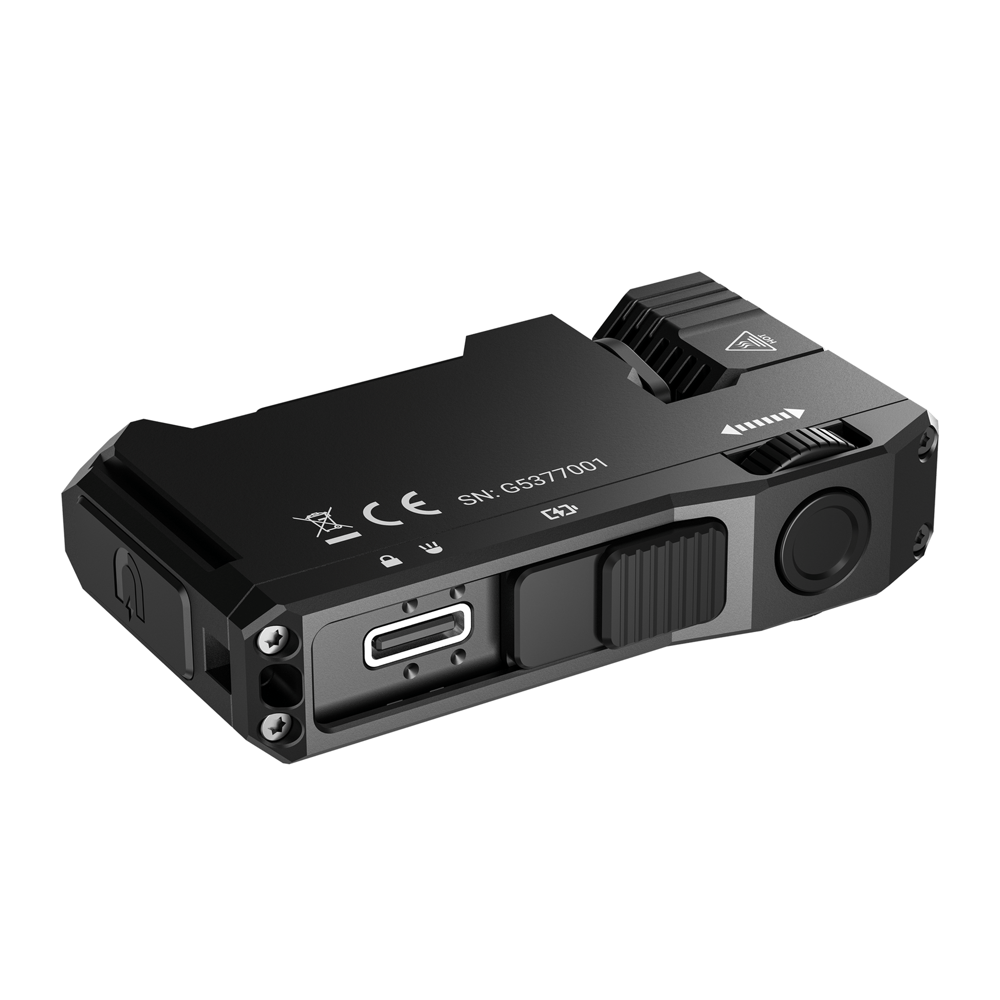 Slider Switch: Locks the light and covers the USB-C port