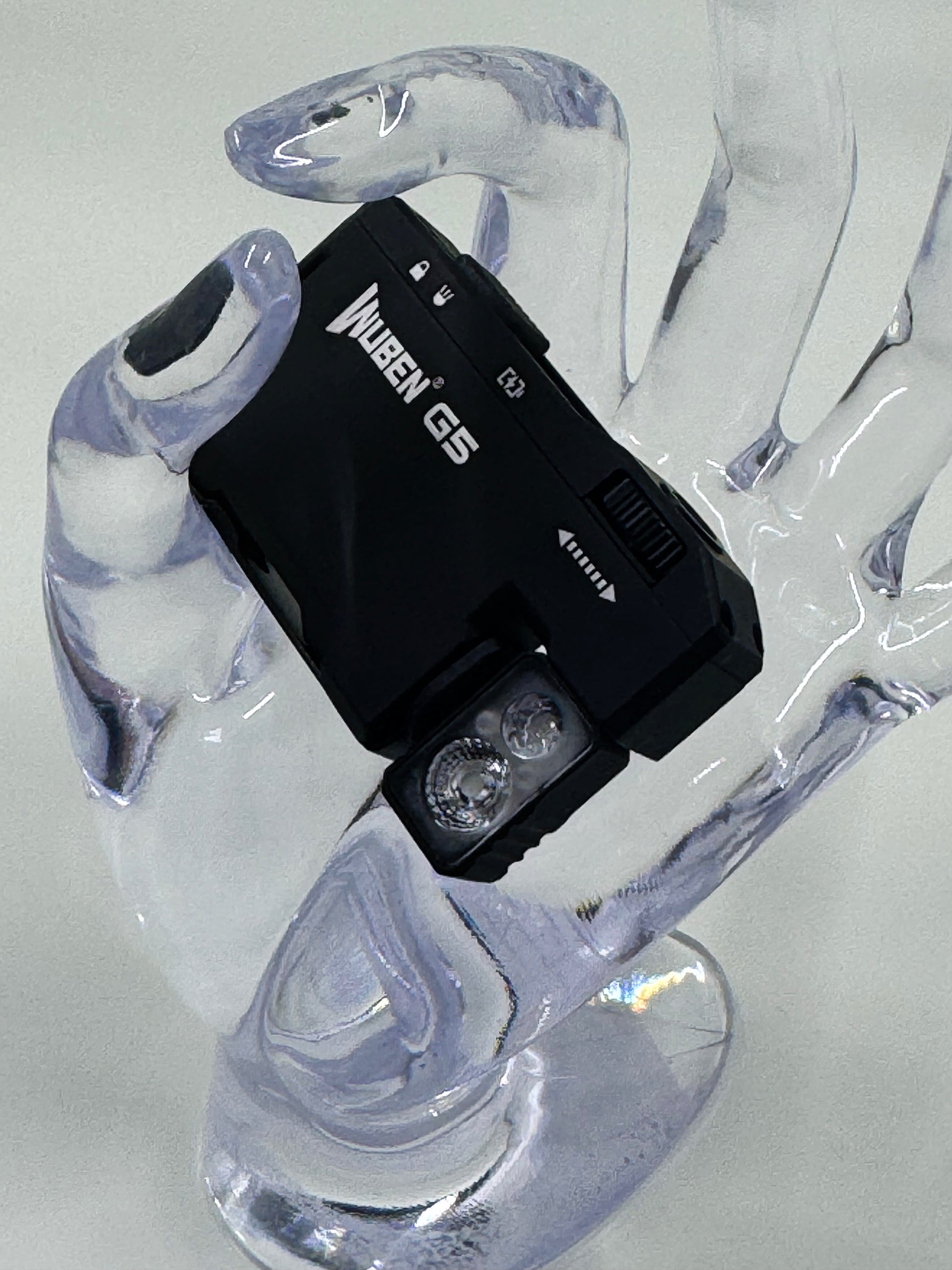 Equipped with a 450mAh LiPo battery, the G5 supports USB-C charging. The sliding switch protects the charging port and acts as a lock to prevent accidental activation. Charging indicators display red while charging and turn blue when full.