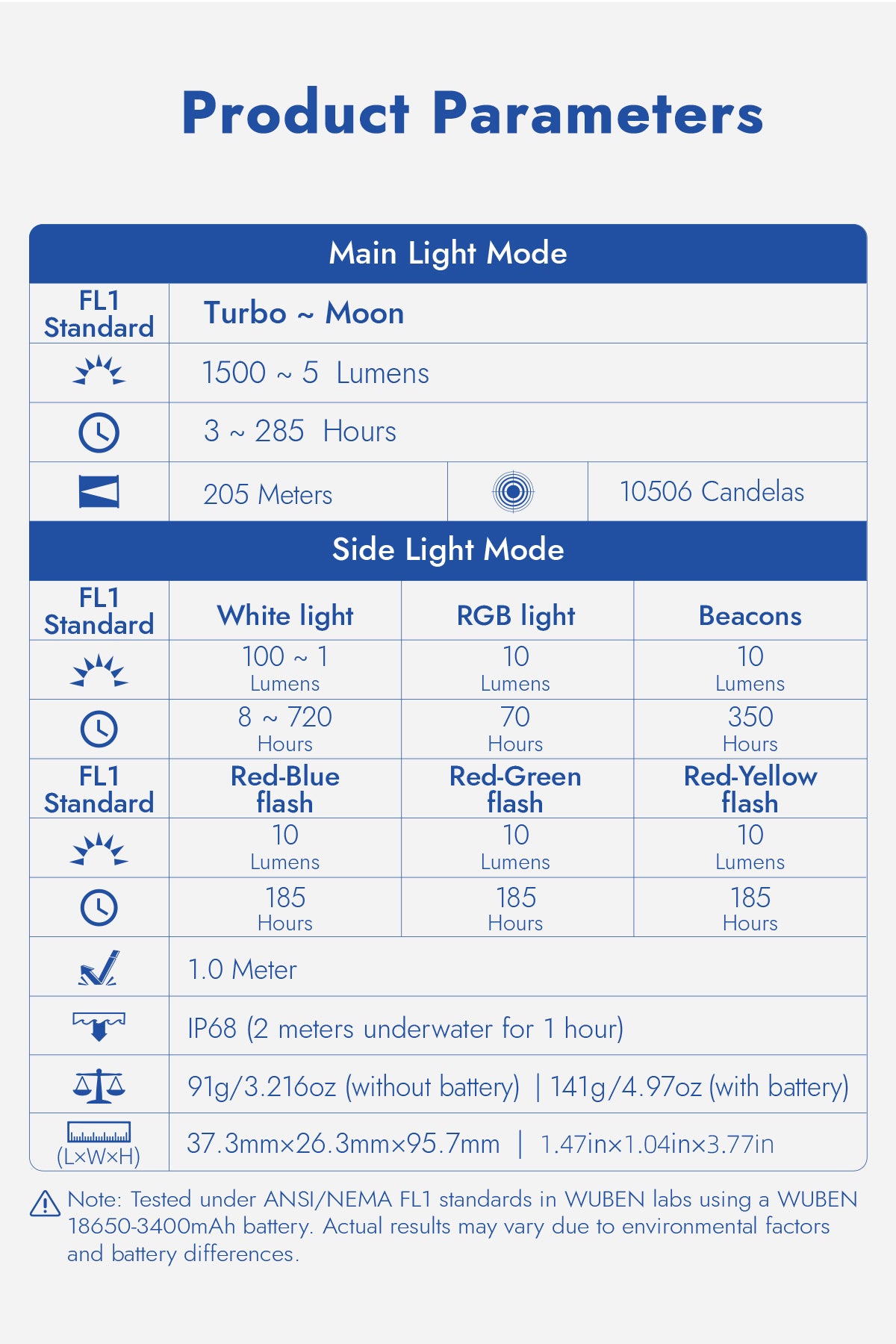 Wuben X4 1500 Lumen Flashlight w/ RGB sidelight
